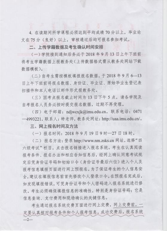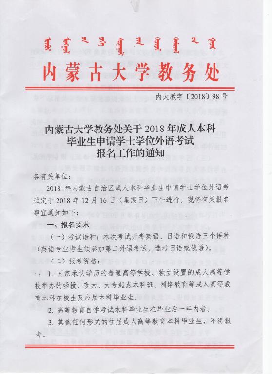 内蒙古大学关于2018年成人本科毕业生申请学士学位外语考试报名工作的通知