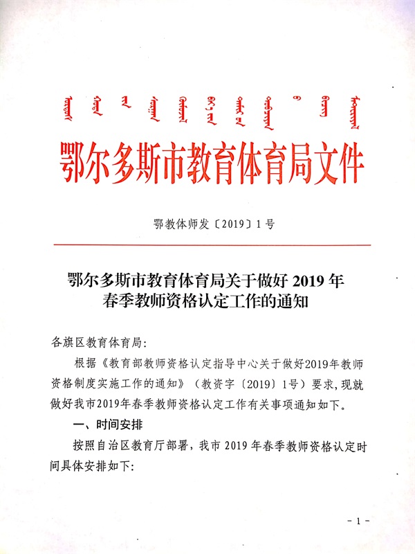 鄂尔多斯市教育体育局关于做好2019年春季教师资格认定工作的通知